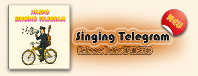 Harpo ist mit neuer Musik zurück. Die neue Single Singing Telegram entstand über einen Zeitraum von mehr als fünfzig Jahren – vom ersten Funken 1969 bis zur fertigen Aufnahme im Jahr 2025. VÖ: 7. November 2025.